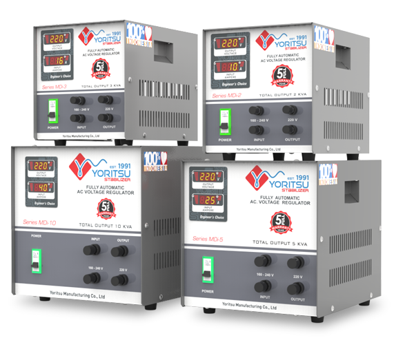 Kami menawarkan solusi lengkap Yoritsu Voltage Stabilizer yang disesuaikan untuk kebutuhan pabrik, workshop dan kantor Anda.